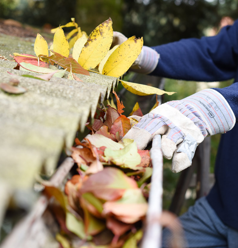 Blätter, Zweige und andere Fremdkörper sammeln sich in Ihrer Dachrinne, was im schlimmsten Fall zu Schäden an der Rinne selbst oder sogar am Gebäude führen kann.